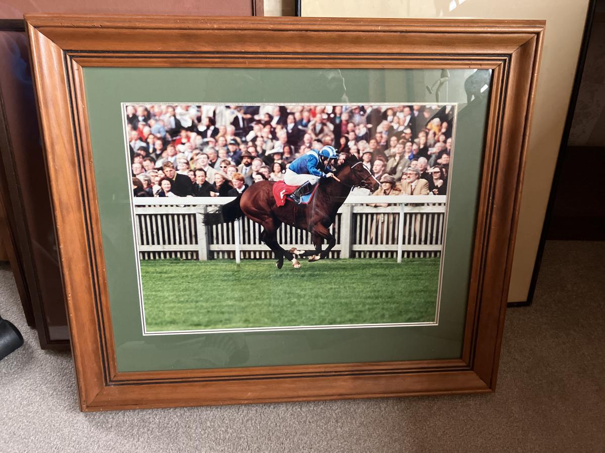 Nicely framed big colour photograph of for one for me unknown race horse.