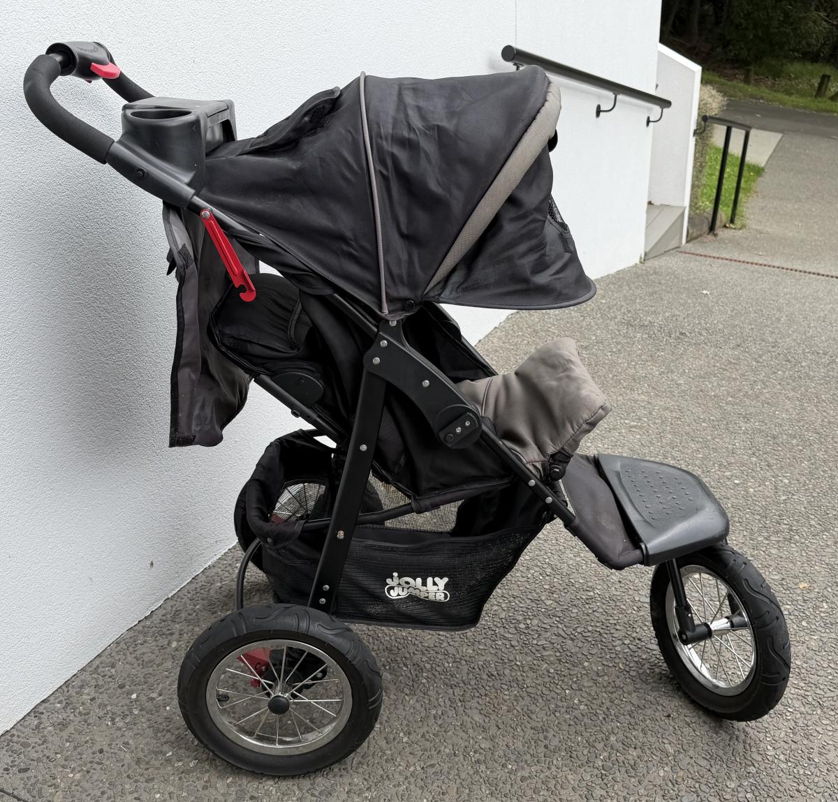 Excellent condition. Great for running or walking. Three large wheels, sun screens, view flap, water bottle holder, parcel tray, lays flat and has 2 settings for sitting. Folds for car or storage