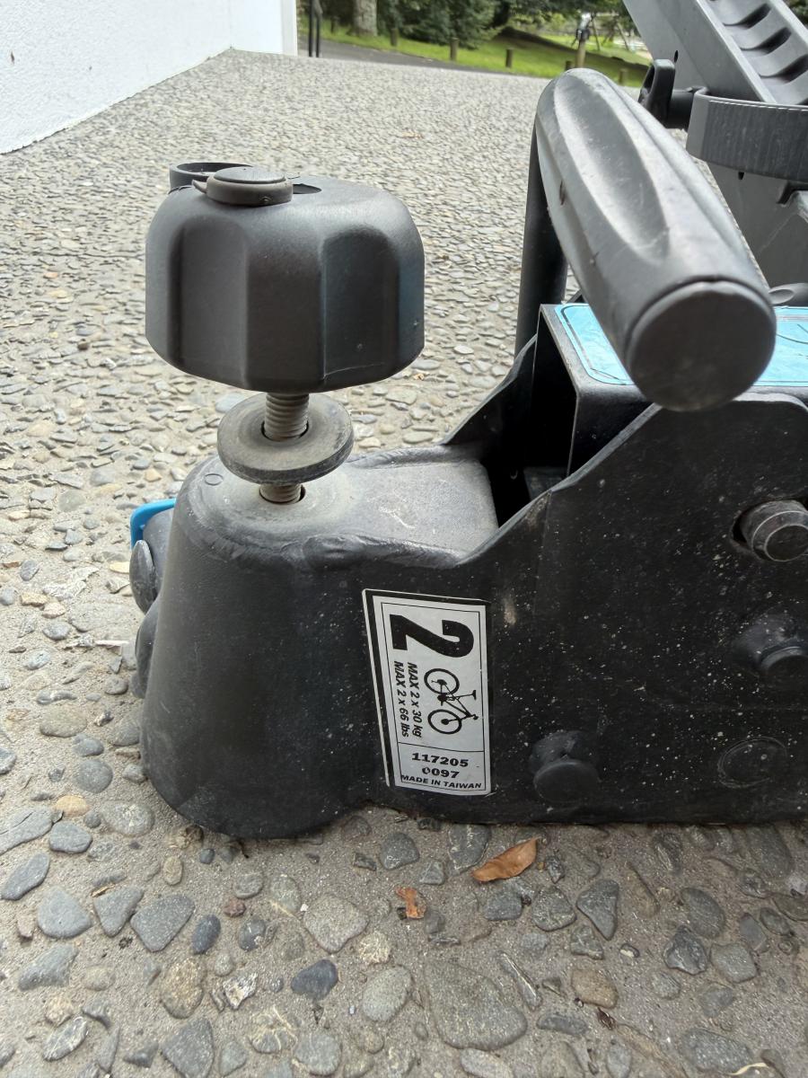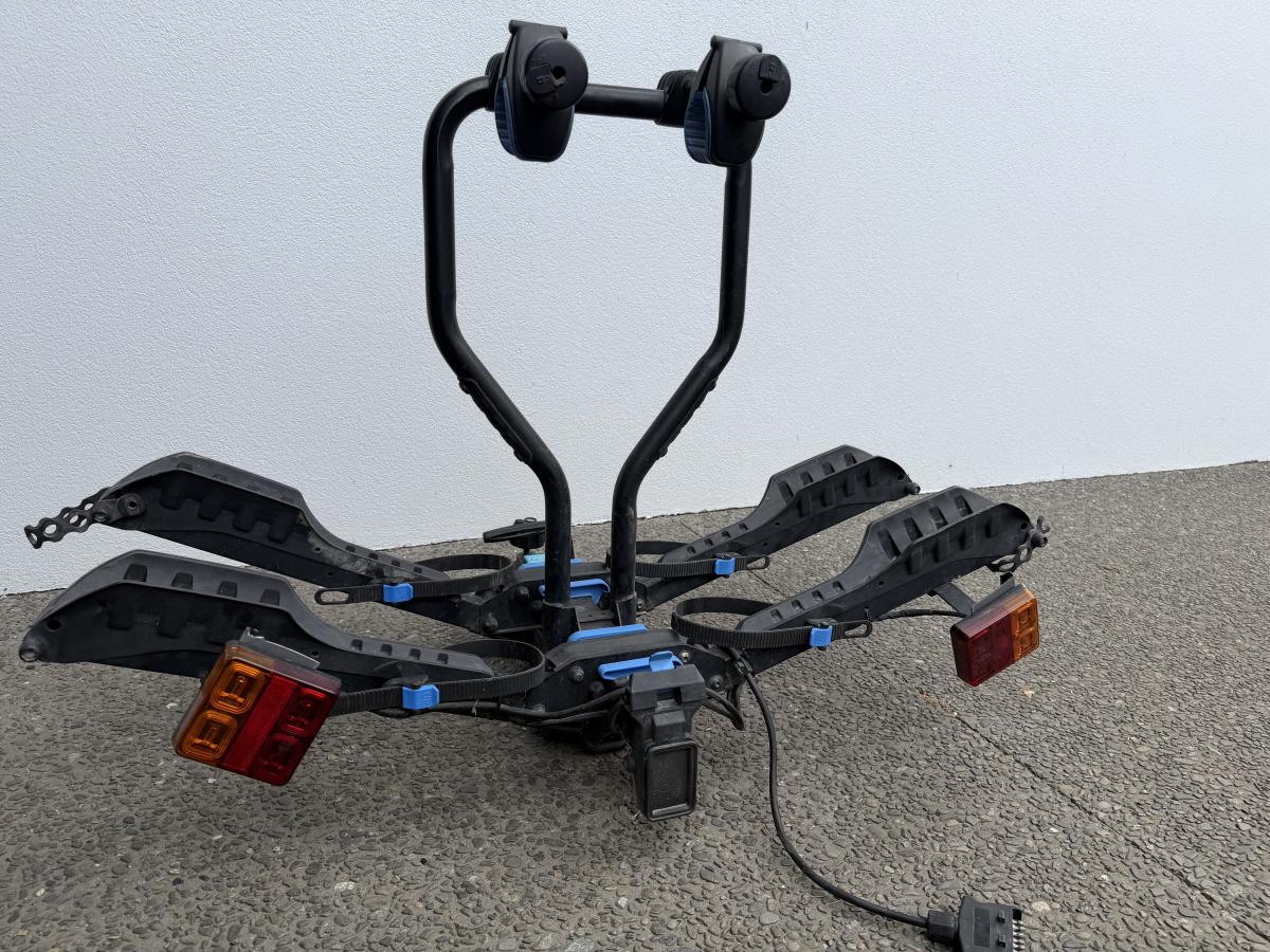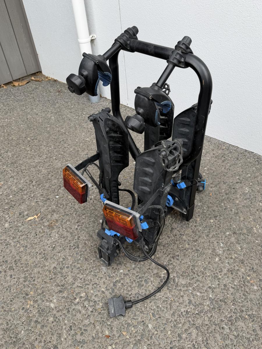 Fits standard tow ball. Wired for lights. Folds up for storage. Rack can drop down to allow access to back of car or van. Offers text 021816791