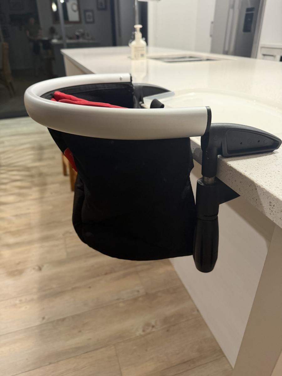 Phil &teds portable high chair with crab claw clamps for cooling to side of table or bench. Has carry bag. Great for camping. Text 021816791