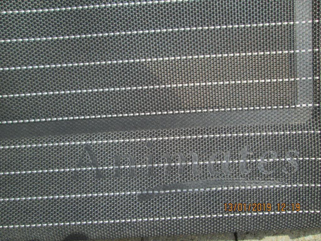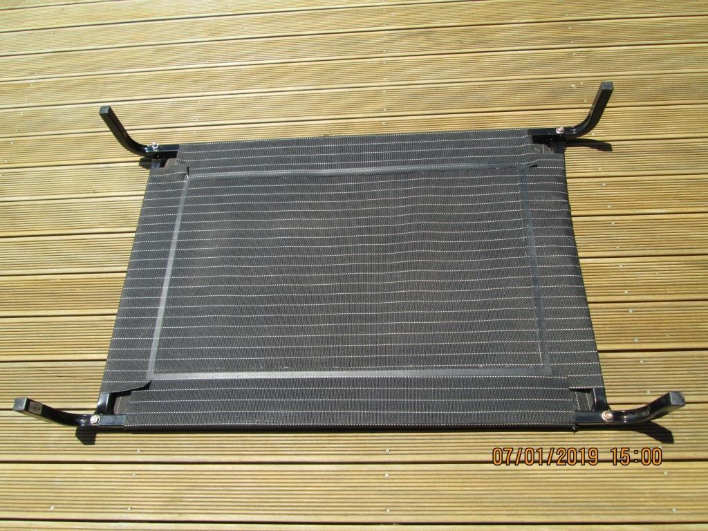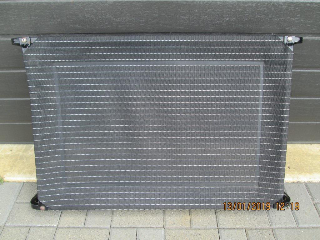 Animates brand dog trampoline bed to suit medium to large dog. Very sturdy steel frame. Charcoal pinstripe canvas cover. Has been used with cover on. In good condition. No tears. Product can be seen on Animates.