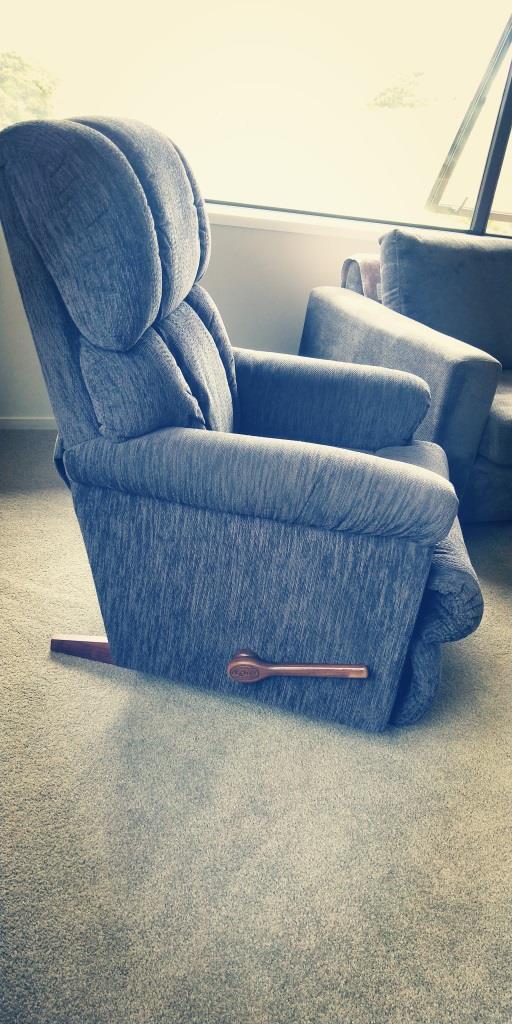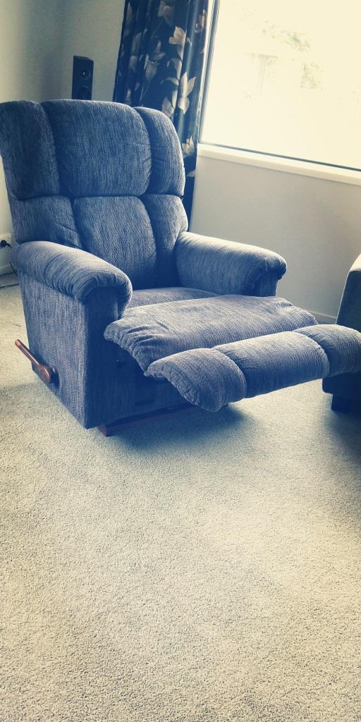 I have 2 matching fabric dark grey reclina-rocker genuine lazyboys for sale in beautiful condition. One is medium for her, the other larger for him. They can be taken apart for transport and put together at their destination. They are made for this. Jason furniture made. I am selling them as a … View moreI have 2 matching fabric dark grey reclina-rocker genuine lazyboys for sale in beautiful condition. One is medium for her, the other larger for him. They can be taken apart for transport and put together at their destination. They are made for this. Jason furniture made. I am selling them as a pair. Can be viewed by appointment if you wish to see them. You will not be disappointed.