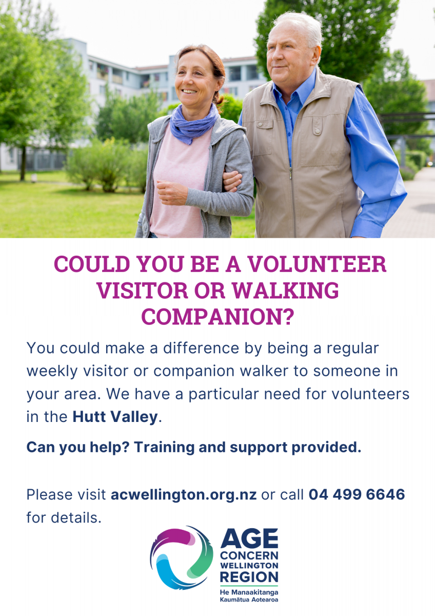 Age Concern Wellington call for Lower Hutt and Upper Hutt volunteers