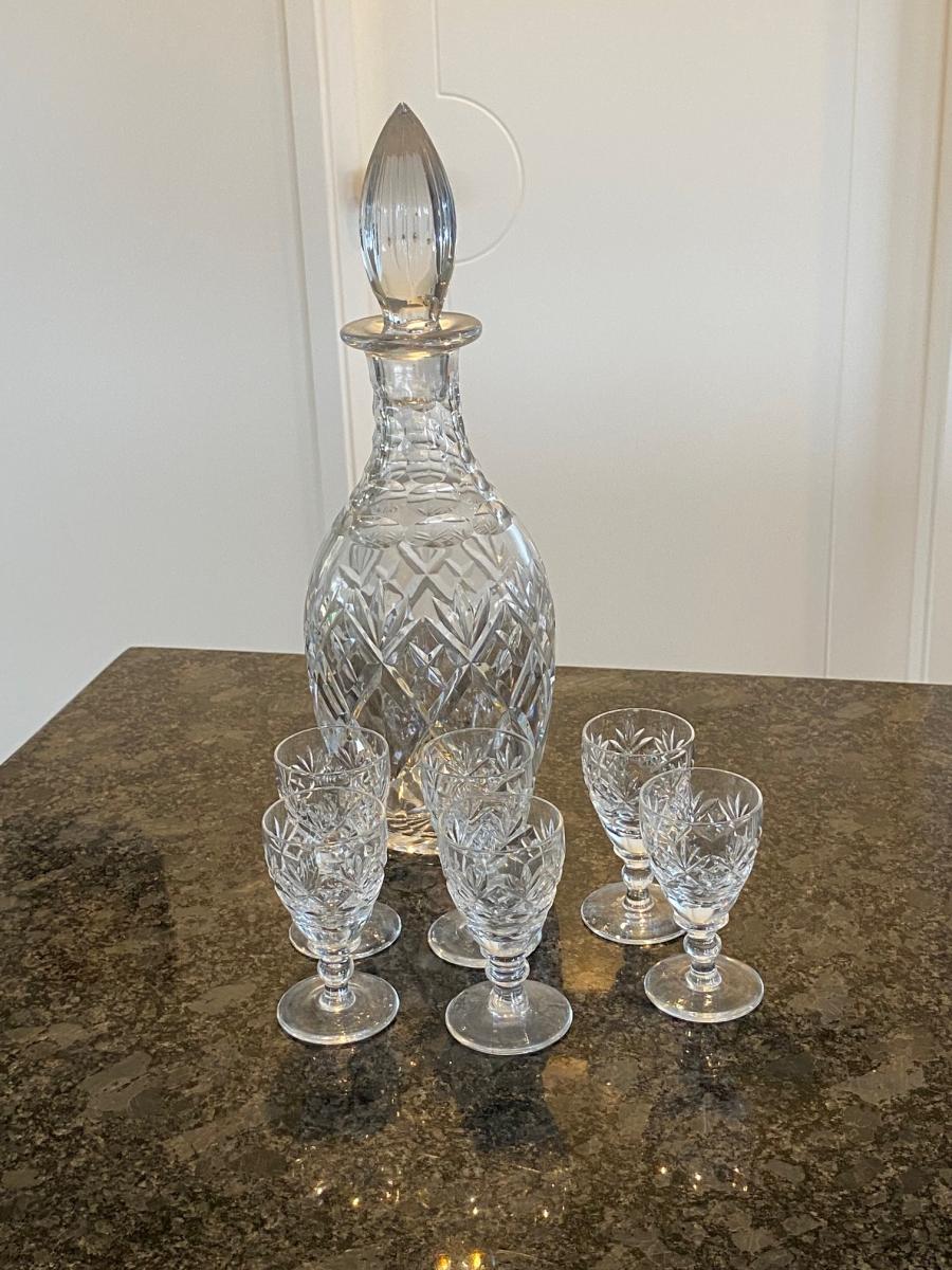 Webb & Corbett crystal decanter, no chips. Glasses are listed separately.