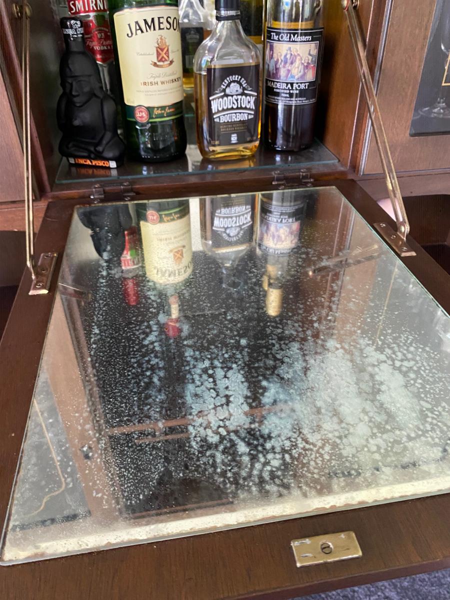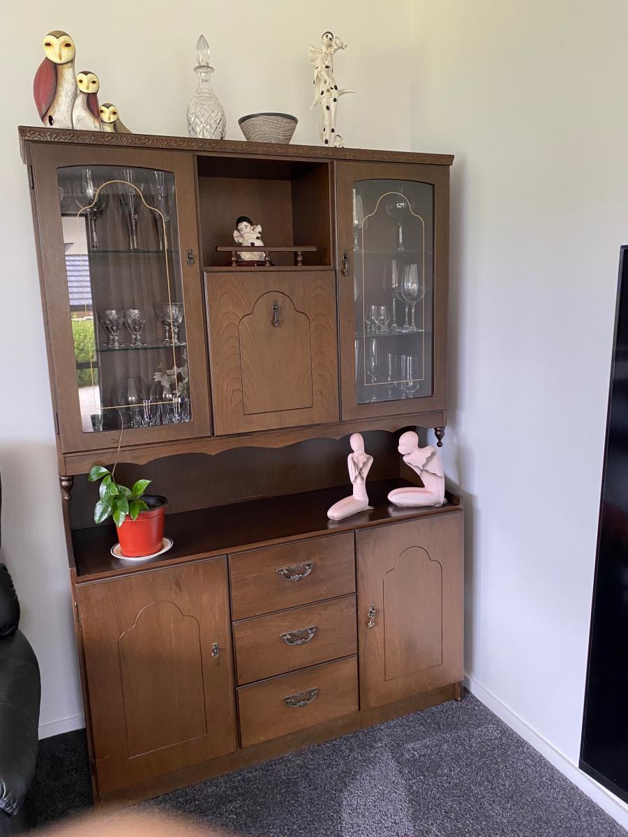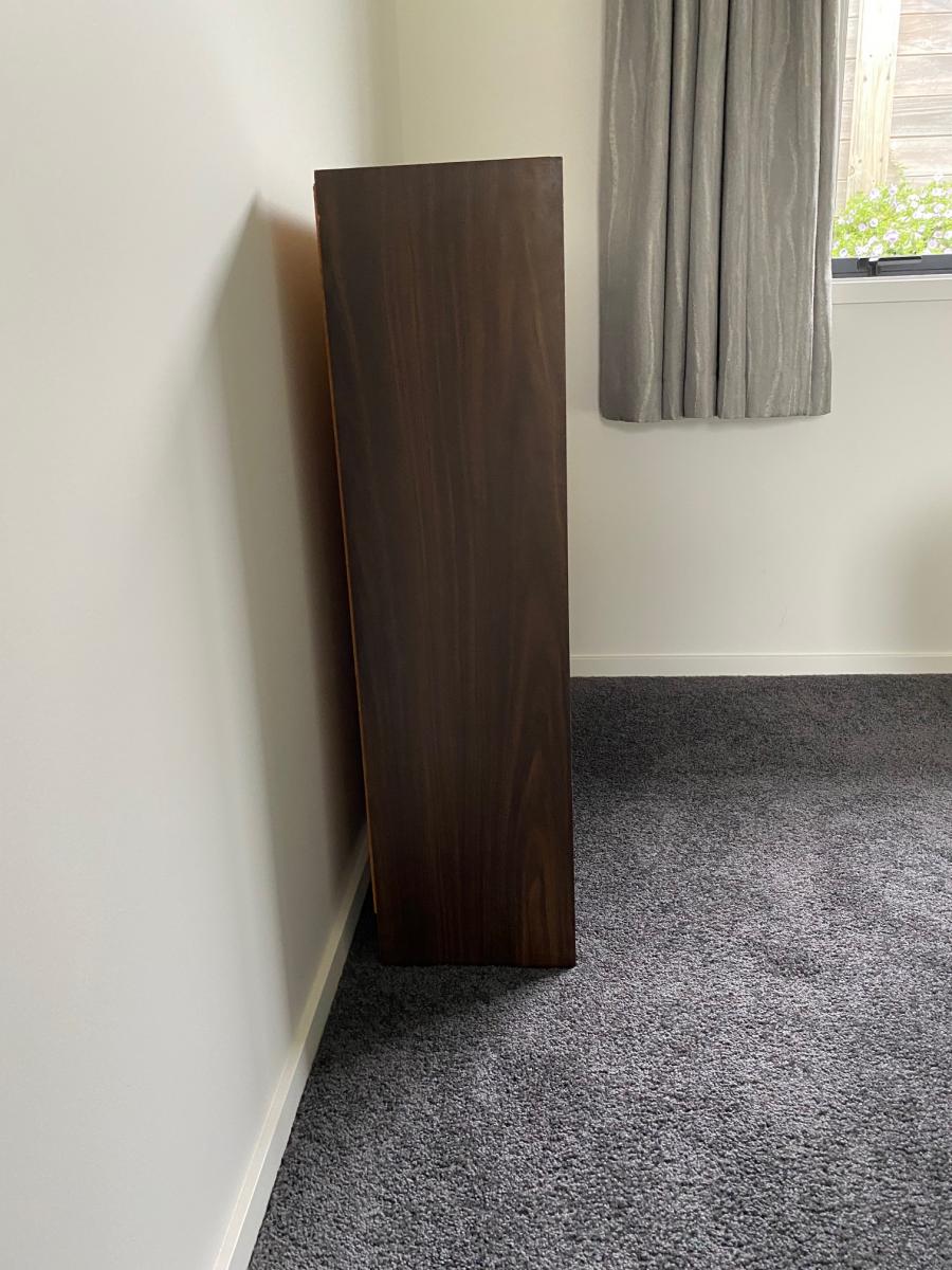 Used condition. Two handles have broken but they're easily replaced. An air freshner fell over and leaked, damaging a section of the top. The mirrors inside fold down area are stained. These flaws are only noticeble if you inspect it closely. Dimensions: H1800mm, W1200, D400