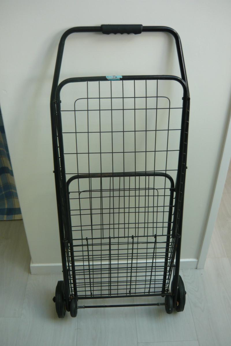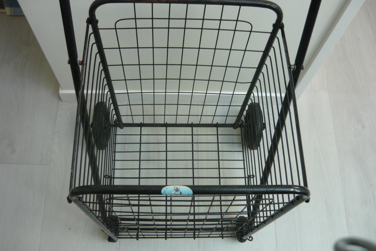 Shopping Trolley on wheels with good sized basket.