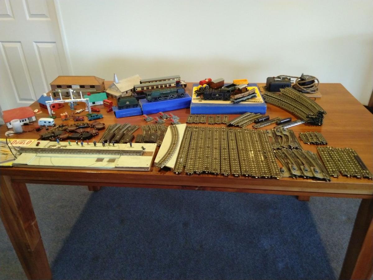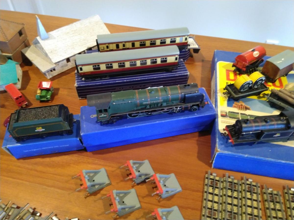 20 long straight tracks, 18 assorted … View moreLocomotive and coal wagon " Duchess of Montrose" #46232 plus two Passenger wagons #M4183 and #26133.