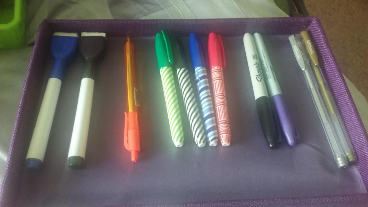 Selection of pens, pencils and permanent markers to give away, preferably as one set but could also split them if desired.