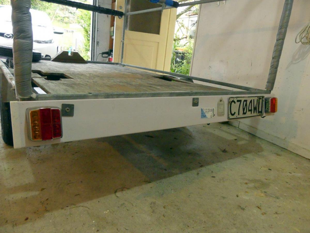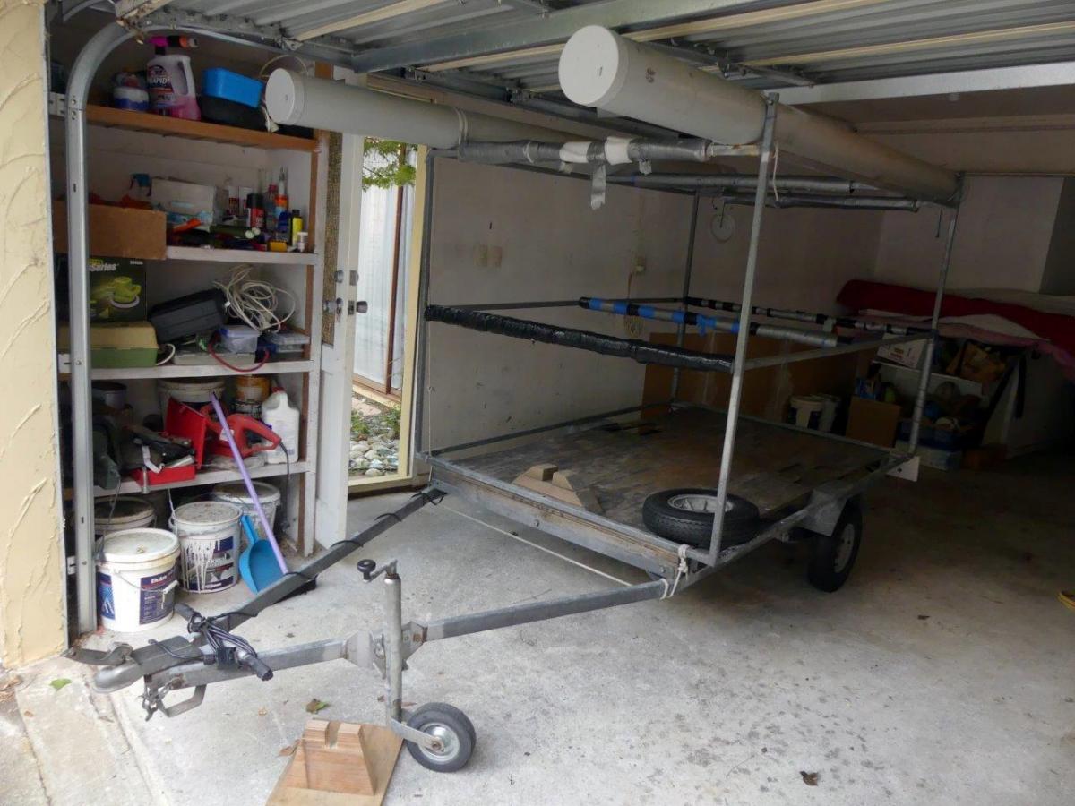 Road trailer factory built in 2004 with a frame suitable for 3 small sailing dinghies (e.g. Optimists, P Class or Starlings). Comes with a jockey wheel, spare wheel and two tubes for sails/spars. Always kept in a garage. Current registration and WOF. Available for viewing in Crofton Downs, … View moreRoad trailer factory built in 2004 with a frame suitable for 3 small sailing dinghies (e.g. Optimists, P Class or Starlings). Comes with a jockey wheel, spare wheel and two tubes for sails/spars. Always kept in a garage. Current registration and WOF. Available for viewing in Crofton Downs, Wellington. Contact phone number: 021 2208028