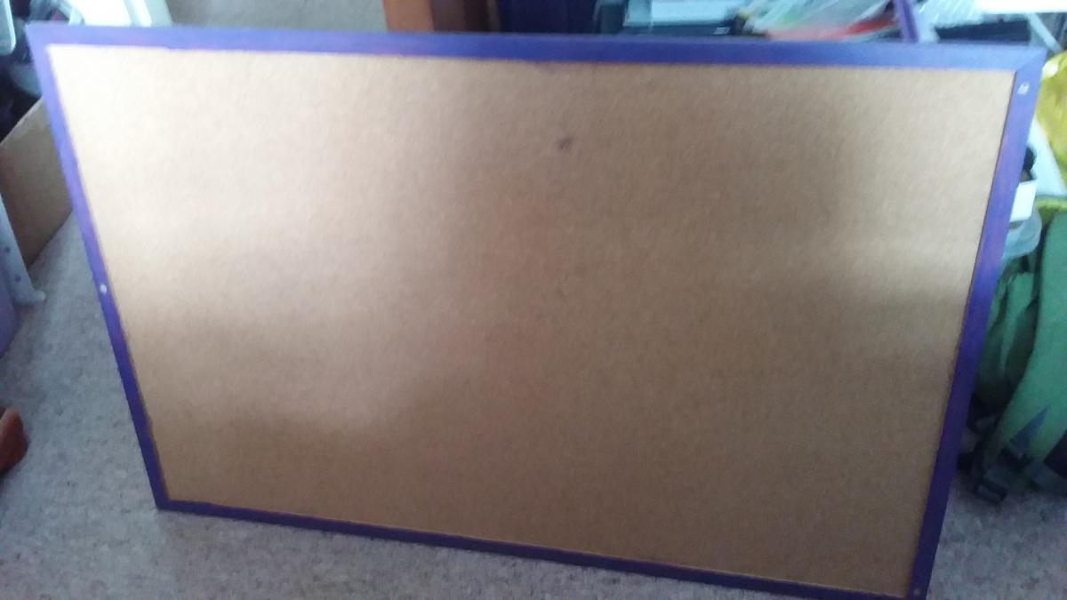 In good condition but no longer required. Please comment your interest then PM for … View moreCorkboard with 2cm wooden border available - free. Plain corkboard measures 60cm x 90cm with a 2cm wooden border around the pinning area. The border is painted purple on one side but the other side is plain wood.