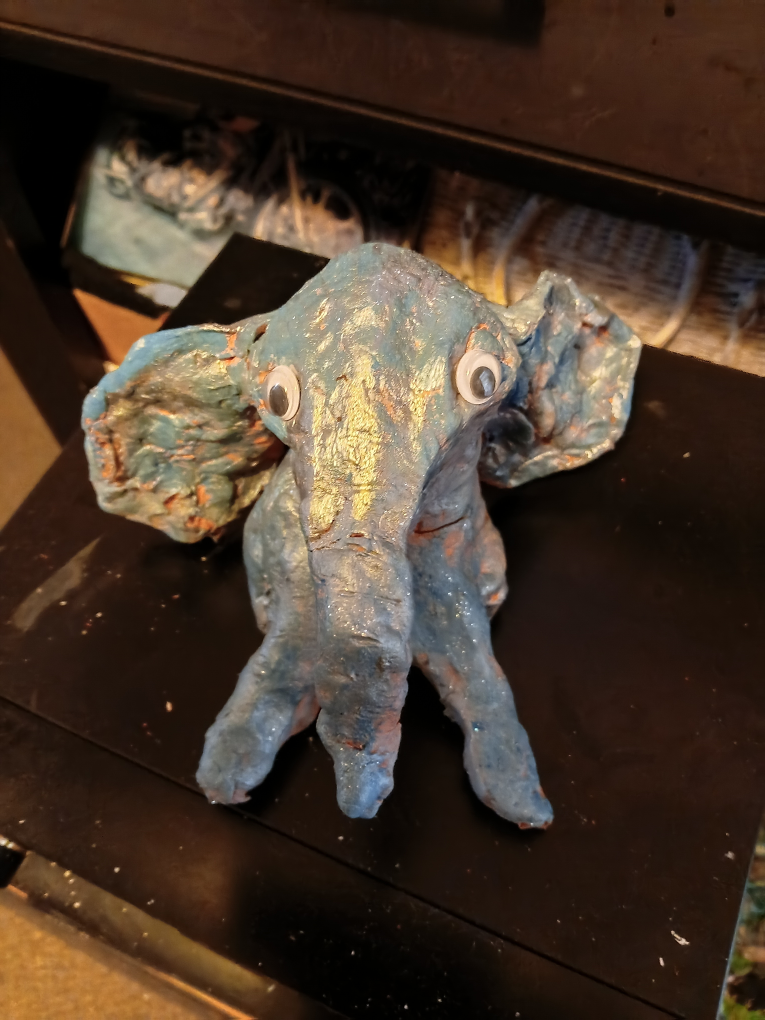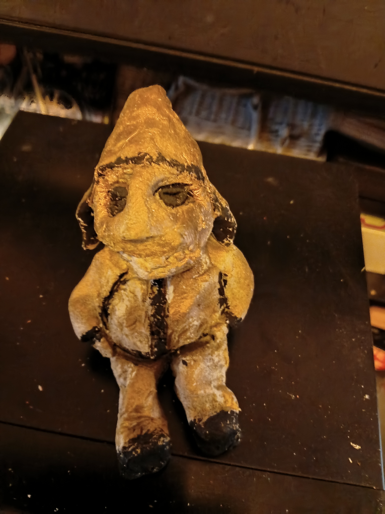 Elephant and gnome. Gnome holds cell phone. Offers considered. Please pick up. All hand made aprox 18cm tall.