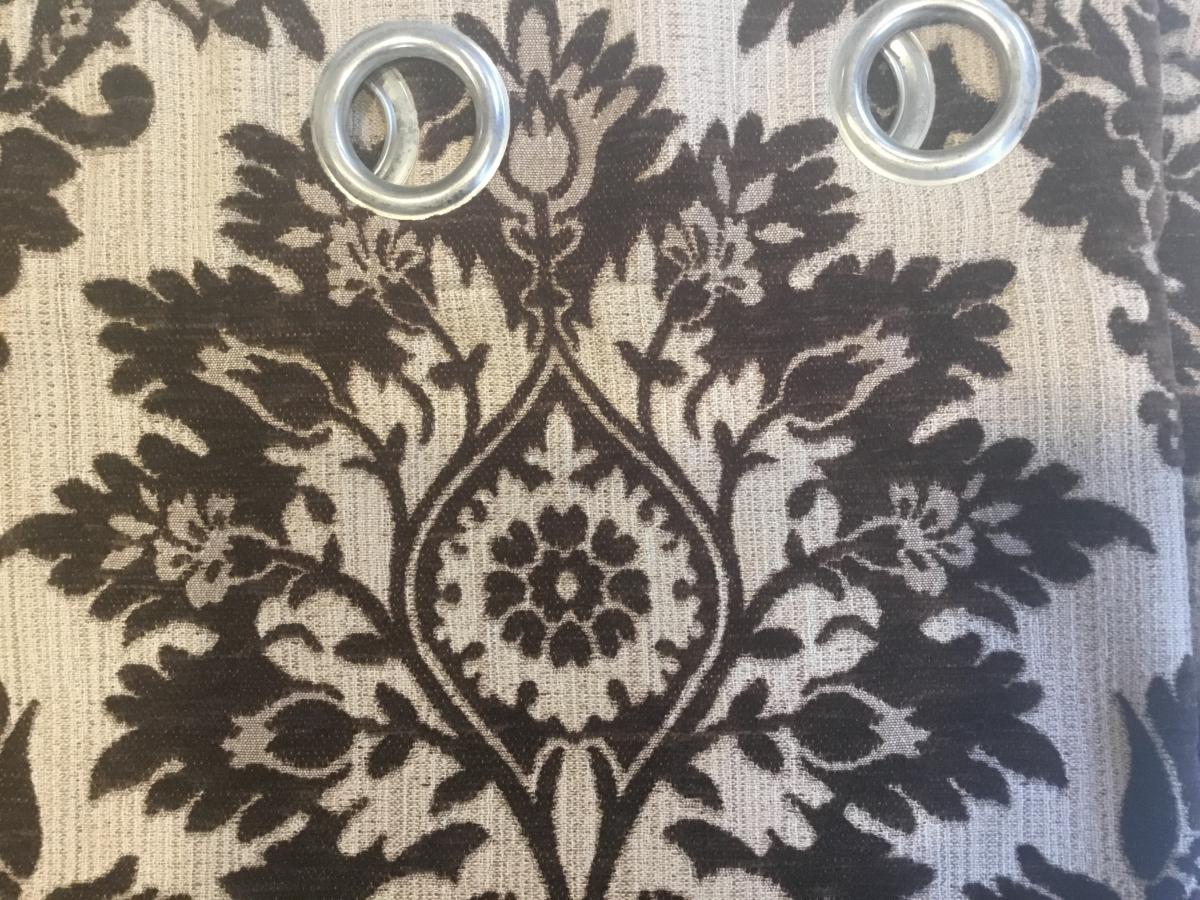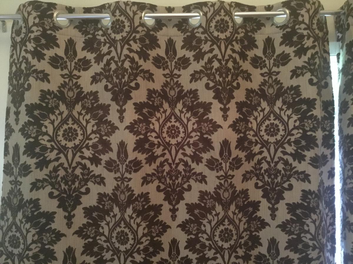 6 x Eyelet curtains,excellent condition ( pet free smoke free home) Damask /tapestry design Dark/light brown.