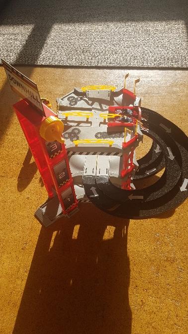 Cars racing track garage. Brought for my son for Xmas but has decided he doesn't like it. Just missing a couple of yellow barrier bits and couple flag edge barriers shown in photo. Comes with 2 Ferrari cars and already assembled. Pick up Southgate. Feel free to ask questions