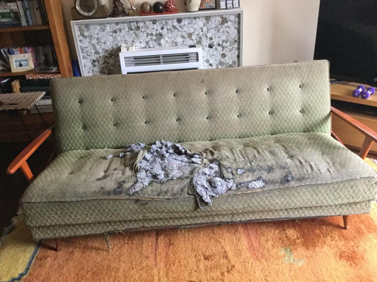 Would you like our couch ? It’s very cool but as you can see needs a lot of work to make it special again. Call Steph on 029 3898975 if u are interested. We are in Newtown with easy access.
