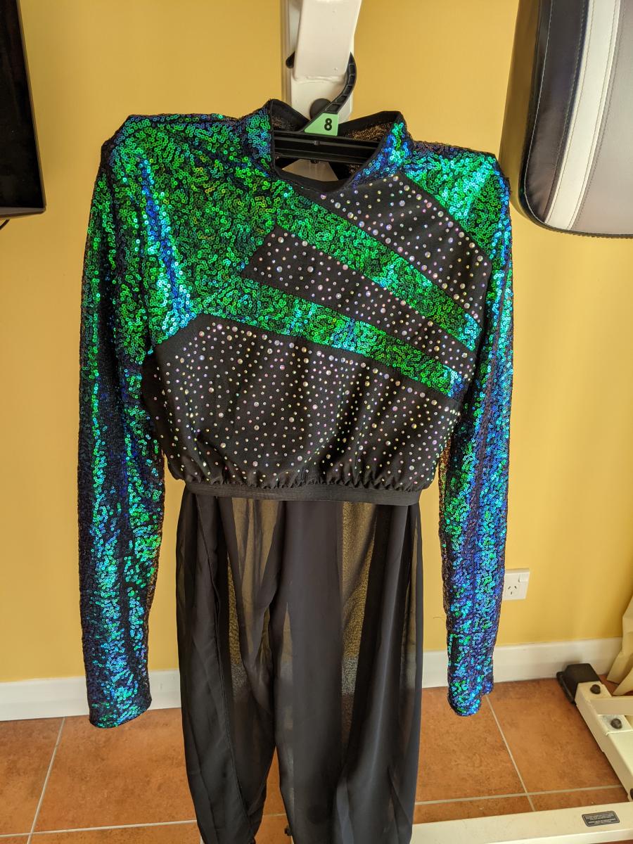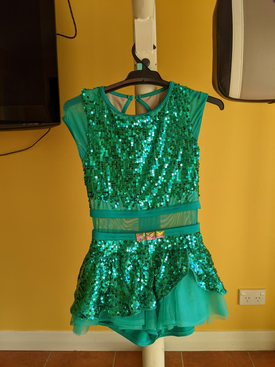 Green and black costume for year 13-14. Tutu for 10-12. The rest two is for 8-10.
