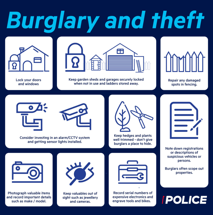 Suspicious or illegal activity should be reported by calling 111 immediately if it’s happening now, or via 105 if it’s afterwards.