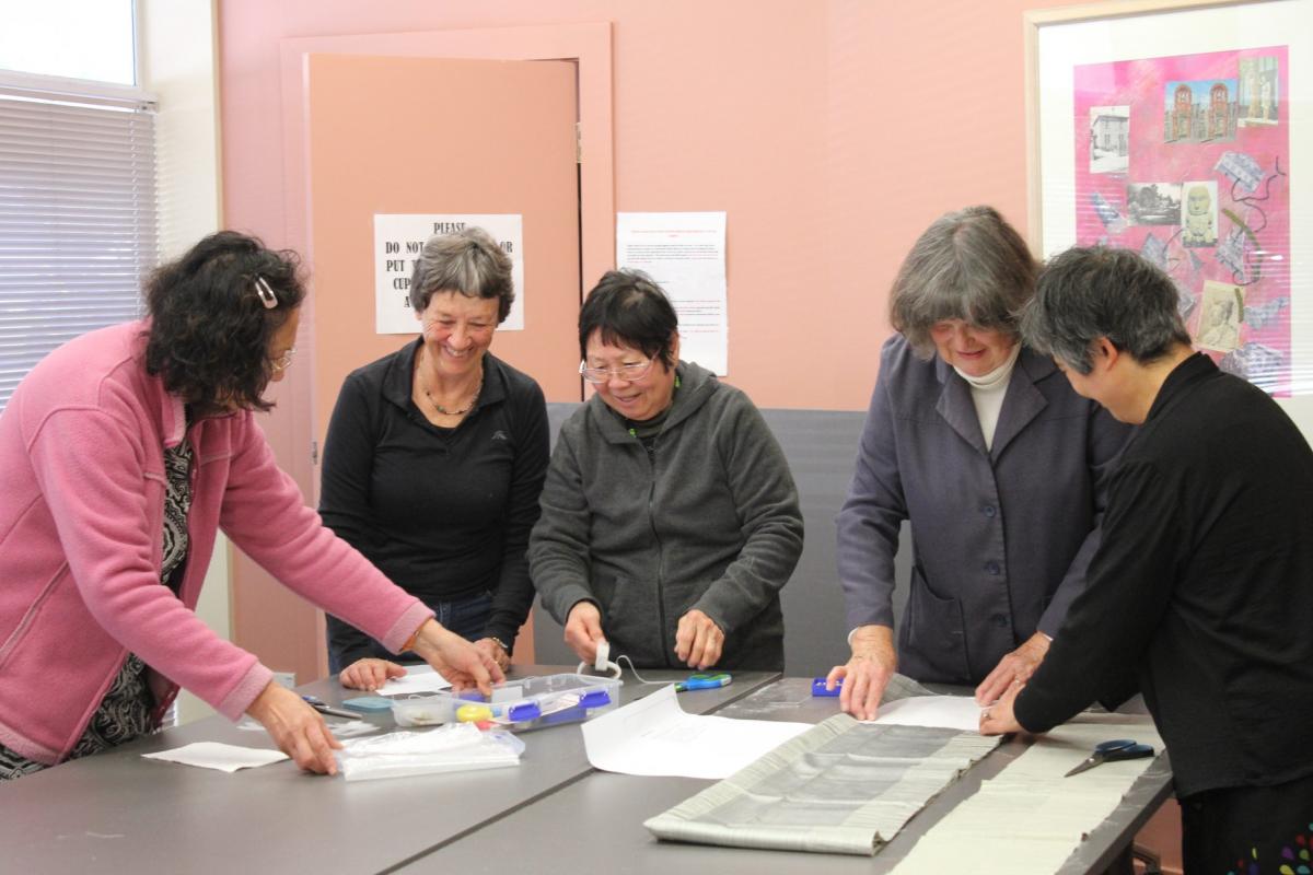 3 cheers for our Creative Volunteers! Here's Tina, Lynne, Peggy, Judith and Esther creating drain bags made from lovely fabrics, for breast cancer patients after surgery. ❣️