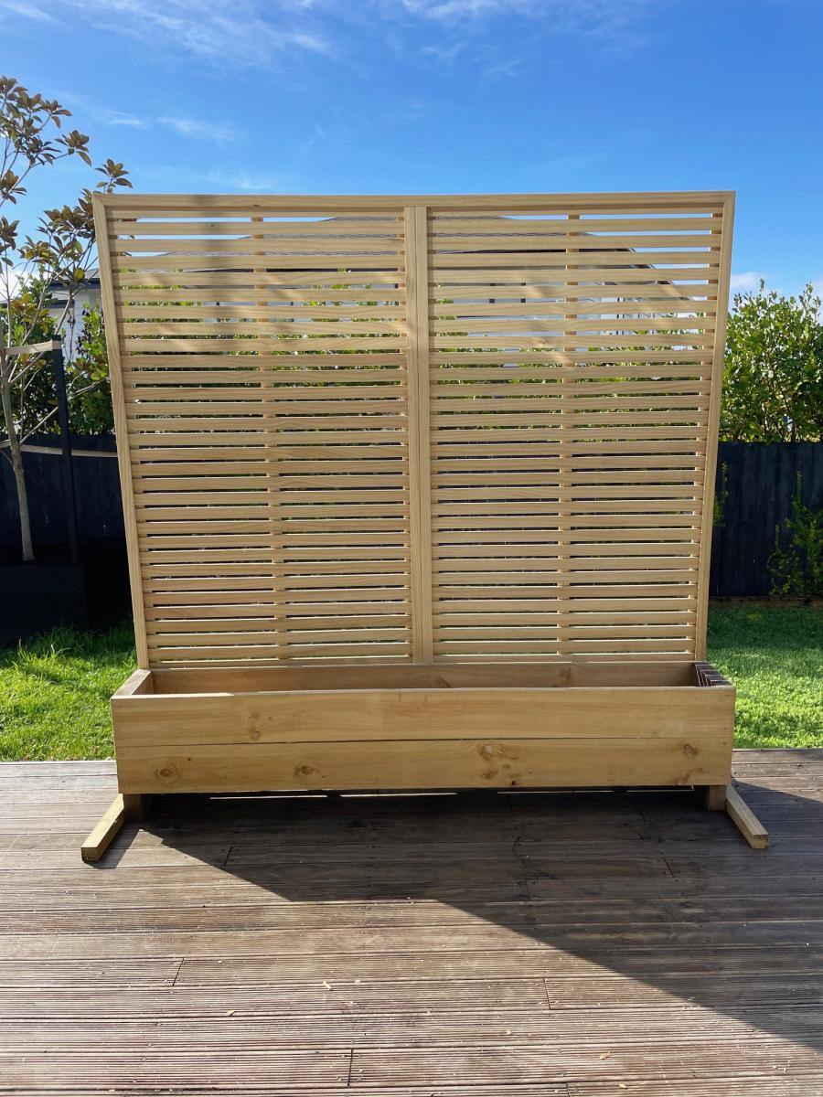 This trendy rustic style treated timber planter box is a narrow width making it perfect for planting privacy screen on decks without taking too much deck space. Has drain holes in base. Made from H3.2 treated pine with stainless steel screws. … View moreAdd greenery and privacy to your out door spaces.