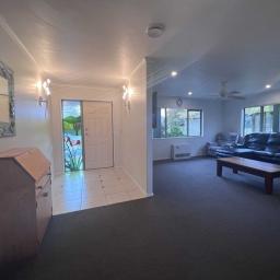The main dwelling entrance has Italian light fittings & Paua Shell tile features. The open plan living, dining & kitchen gives space for everyone. Make your morning coffee & watch the ocean shine from the sun rising or cook dinner & watch the stunning sun sets.
