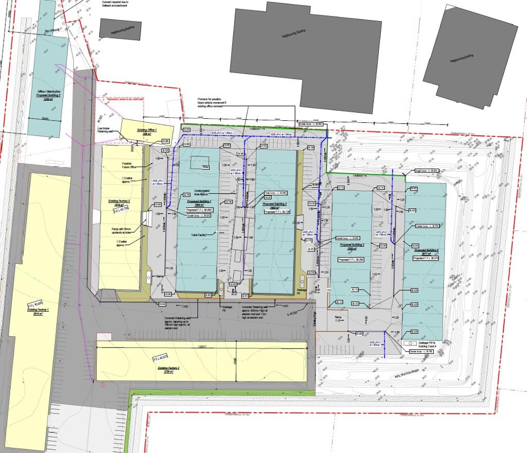 Proposed new industrial building options range from 1,558m2* to 3,808m2* which could possibly also be altered to suit an incoming Tenant's requirements. Office space can be built inside the warehouse area to suit in consultation with the Landlord.