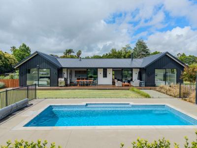 This beautiful, secluded residence may be in the heart of Riverview, but the off-road location offers great privacy and very definitely that special 'Kerikeri' feel. The home itself is superbly maintained and is large, with stylish living spaces, five bedrooms and superb alfresco areas around the inground swimming pool. The parklike gardens offer a variety of fruit trees and some larger specimen trees, as well as expansive, level lawns for the children to run around. Property features include: