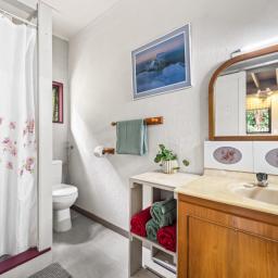Set on 1.219 hectares, the land provides a beautiful balance of native bush and open grazing areas, creating a natural setting that feels both private and peaceful. The off-grid cottage sits comfortably within the landscape, surrounded by established gardens and rural views, making it an ideal place to relax, recharge, and enjoy the simplicity of country living.