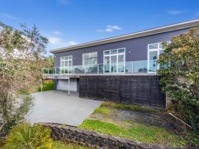 This stylish single-level home offers so much for families of any age. It has fabulous street appeal, three double bedrooms, two bathrooms, two lounges, and an office, so everyone has space to enjoy. The kitchen is at the heart of the main living area, with large entertainer decks to enjoy the elevated outlook, taking in the Whangaparaoa golf course view, Gulf Harbour Village, and a distant view of the city.