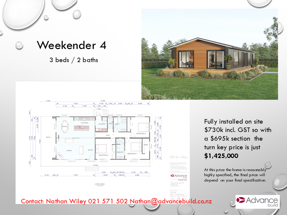 Prefabricated/transportable new homes are becoming a very cost effective and less stressful way to build your new home, companies like Advance Build offer a great range of options see www.advancebuild.co.nz...