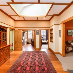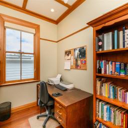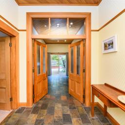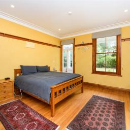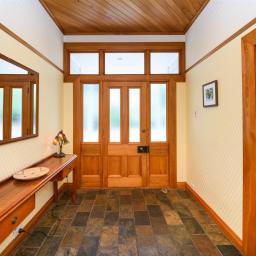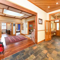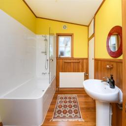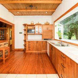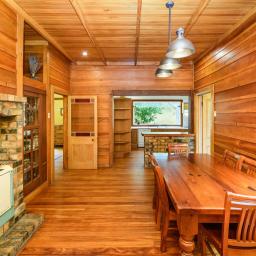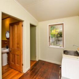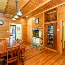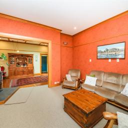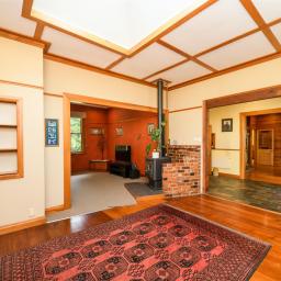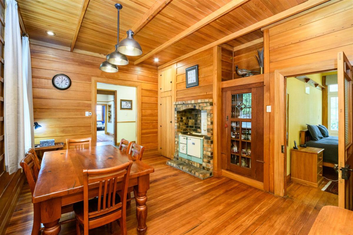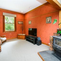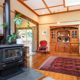The kitchen/dining area has loads of character and the coal range is so in keeping with the style of the home. Walk-in pantry, breakfast bar, great bench space and loads of storage are excellent features. Free-standing woodburner on wetback certainly throws out the heat. Wonderful high ceilings, slate tiles, polished wooden floors all add up to enhancing the build era.