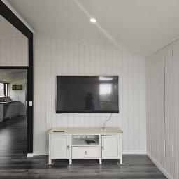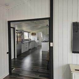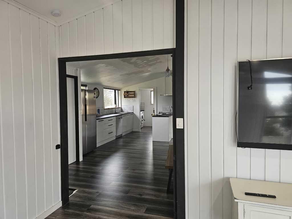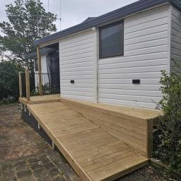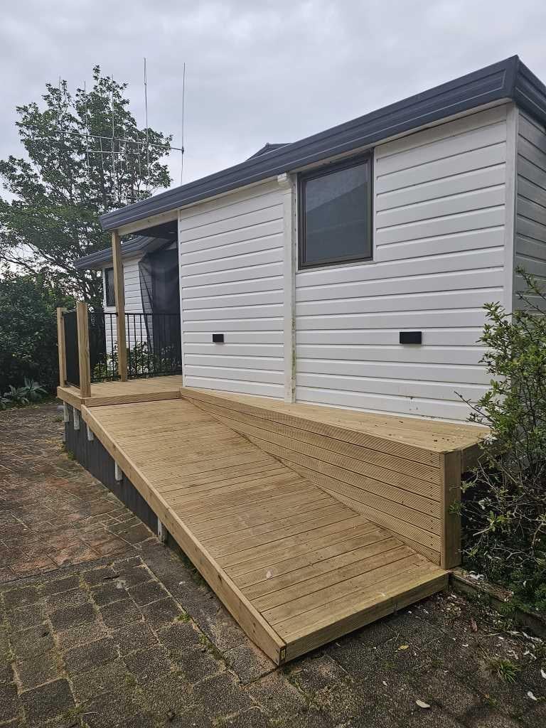 Great open plan living area with modern deck and newly landscaped garden with various orange, lemon, peach, apple and feijoa trees
