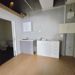 Partly furnished with carpet in the front of house and wooden flooring at the rear for work area at the rear, it includes two kitchenette benches and a separate office.