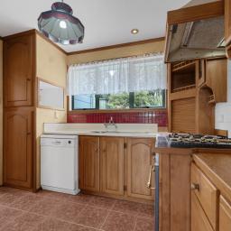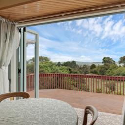 The three-bedroom design remains a tribute to its time, featuring distinct kitchen, dining, and lounge spaces linked by a wall opening, with the lounge and dining room stepping out to a generous deck that offers a front-row position to the picturesque outlook.