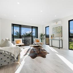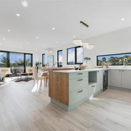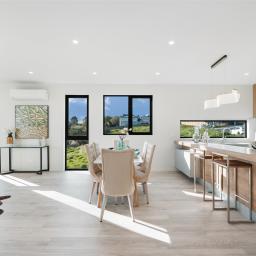 Open-Plan Living: A bright, spacious living and dining area, complemented by a designer kitchen. Two sliding doors lead to a large wrap-around deck-perfect for entertaining.