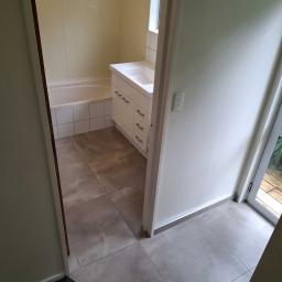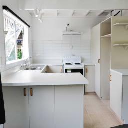 Modern kitchen with durable tiled flooring, underfloor heating, and updated benchtops.