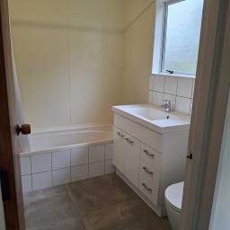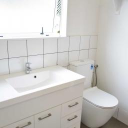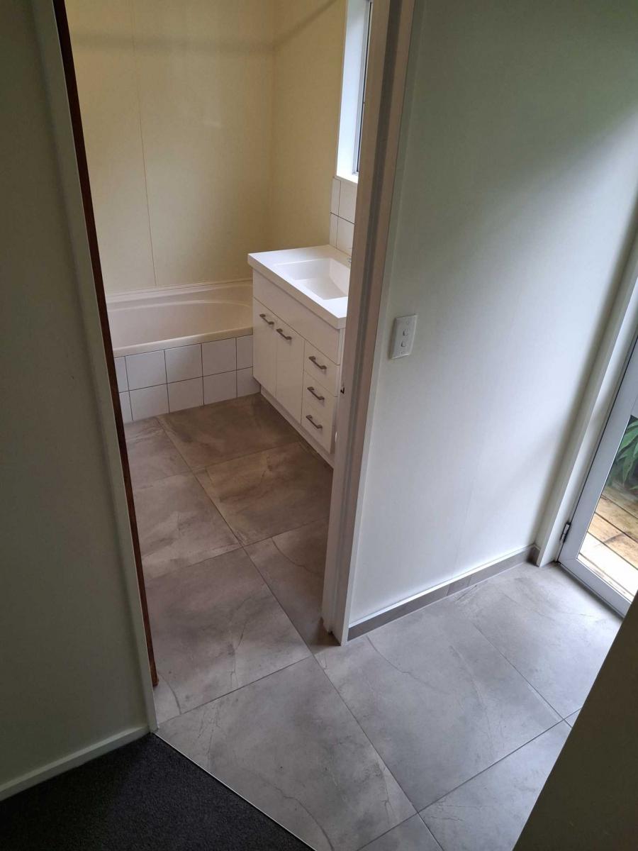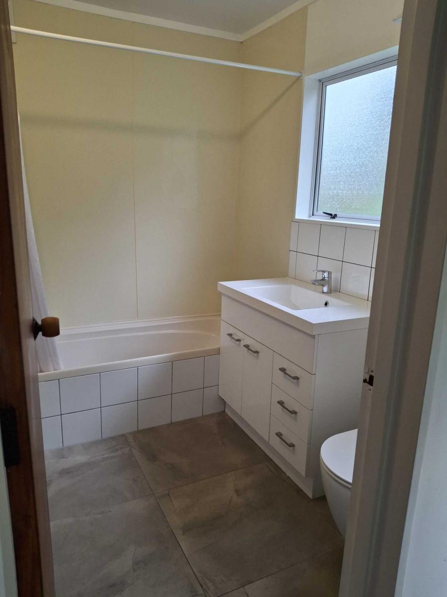 Tiled Bathroom with shower-over-bath and a separate laundry for added convenience.