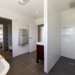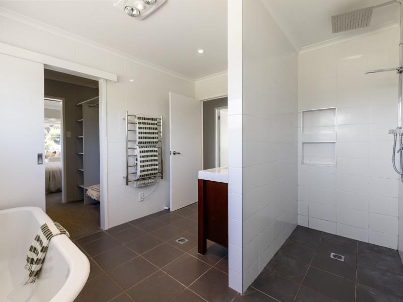 The master suite is a true retreat, featuring a large walk-in wardrobe and a stunning ensuite with a tiled walk-in shower. Thoughtfully designed, this bathroom also serves as the main family bathroom, with dual access for ultimate convenience.