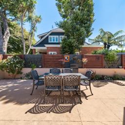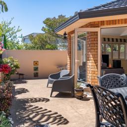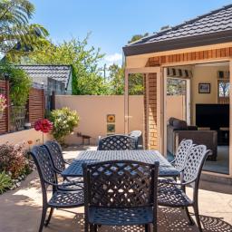 Step outside to discover a beautifully landscaped patio, ideal for entertaining guests or enjoying a quiet evening outdoors. This space is often greeted by local bird life bathing in the water feature, adding to the relaxing feel of the outside space.