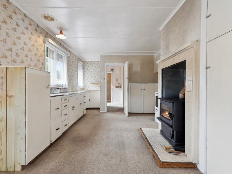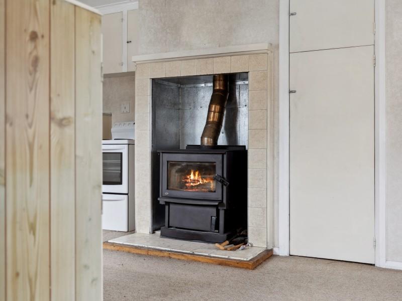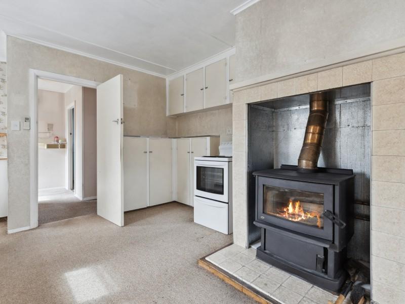 There are three generous double bedrooms, one bathroom and separate toilet, and great options of living areas, as well as having heaps of storage. The kitchen and dining rooms at the rear of the house have both a heat pump and a Yunca wood burner on a wetback to heat the heart of the home. At the front is a separate lounge with a Juno fireplace, so there are plenty of options to keep the house warm.