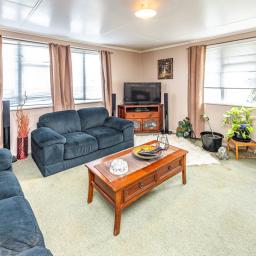 Two double bedrooms, both with storage, an upgraded bathroom with shower, a tidy galley kitchen/dining that leads to a separate laundry, and a large separate lounge with a gas fire.