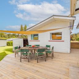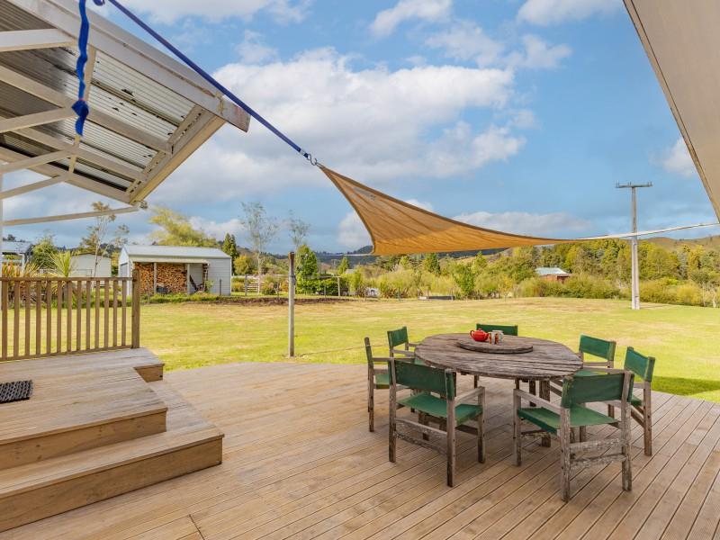 There is a front deck with views and a large sunny afternoon deck with a seamless indoor/outdoor flow. The sale of this property includes two separate titles covering2176sqm in total. The house is on one, and the vendors bought the neighbouring section at a later date, so there is loads of room for the kids to play, and numerous campervans, caravans, tents and more easily fit on the spacious lawn.