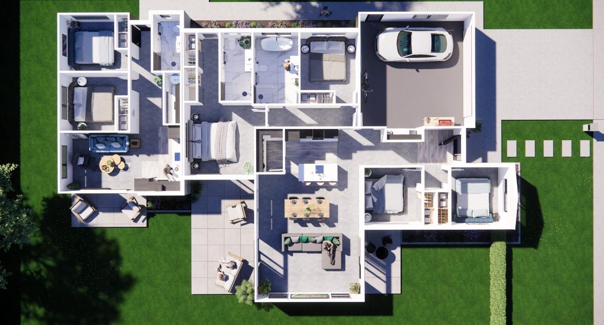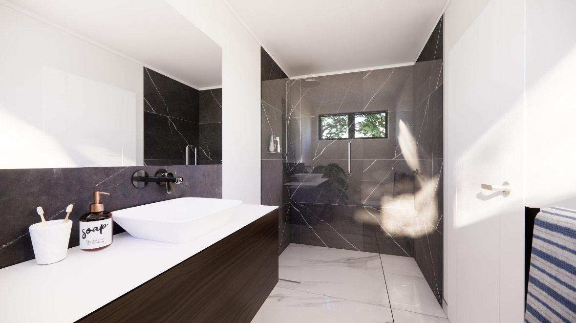 The main house is designed for effortless living, with an open-plan layout connecting the kitchen, dining, and lounge areas—perfectly positioned to soak up the northern sun. It features four well-appointed bedrooms, with the master suite privately located at the rear. Each bedroom includes stylish wood-grain wardrobes with sleek 2.2m mirrored sliding doors, enhancing the home's contemporary feel. The master suite boasts a walk-in wardrobe and a beautifully designed ensuite.
