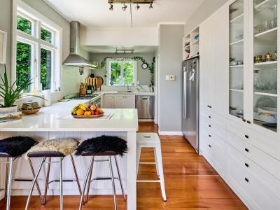 - Open-plan kitchen and living/dining area that opens to a small, north-facing deck for fresh air and indoor-outdoor flow