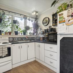* Tidy kitchen with electric cooking