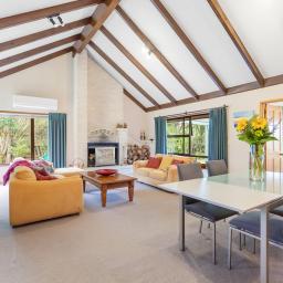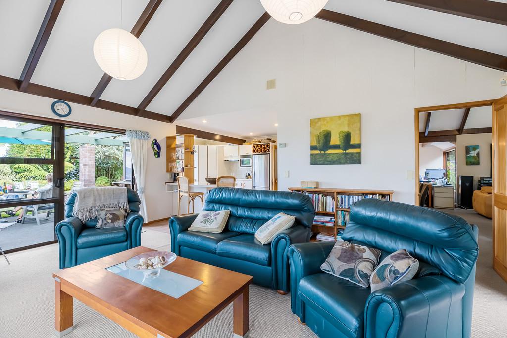 The 350sqm home features 2 cozy lounges and a lodge style open fire and wood burner, and we have four-bedrooms, 2 1/2 bathrooms, linen room, and three living areas. There is generous double garaging, plus the possibility of adding more shedding is a real possibility here. There is a tennis court and small golfing area within the gated community for residents to use, plus lovely walking tracks to meander around in Highland Drive.