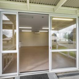 The large bathroom features a wet floor shower, and there are two additional toilets for everyday convenience. A heat pump and fireplace keep things warm through the cooler months. Wide access points and existing ramps make the home mobility friendly.