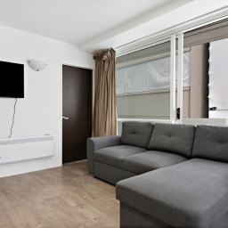 The apartment is high up on the 11th floor. An open plan two bedroom apartment laid out in a practical way.