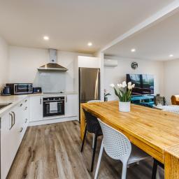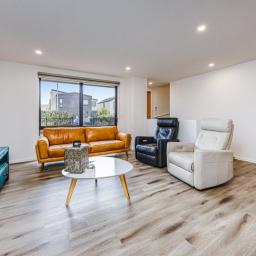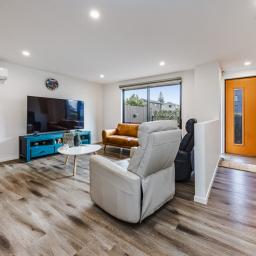 Downstairs, enjoy the seamless flow from a sleek, modern kitchen into a spacious lounge that opens to a private outdoor area-perfect for soaking up sunshine and fresh air. A heat pump ensures cozy nights during cooler months, while a downstairs toilet and laundry add everyday practicality.