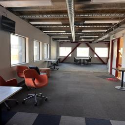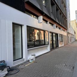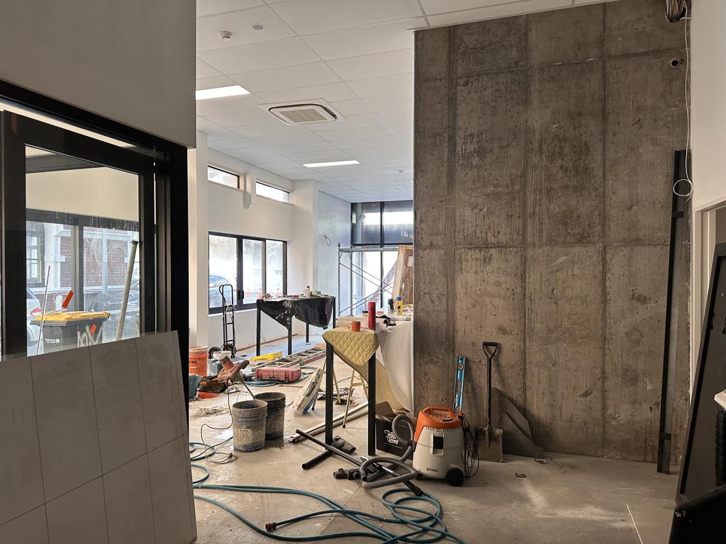 Modern retail space on the ground floor of 170m2* with large windows on two sides for added exposure and good natural light. Includes a separate glassed in office, amenities and storage areas.