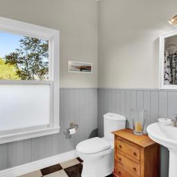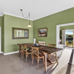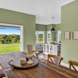 Sustainably designed with passive solar gain, European double glazing, solar hot water, dual system heating, extensive insulation, 2x30,000L rainwater tanks, bore water, and more.