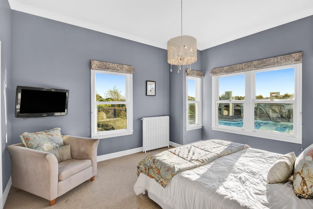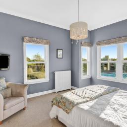 • 3 double bedrooms, all with views and storage; master with bay window, pool views, walk-in wardrobe, and ensuite.